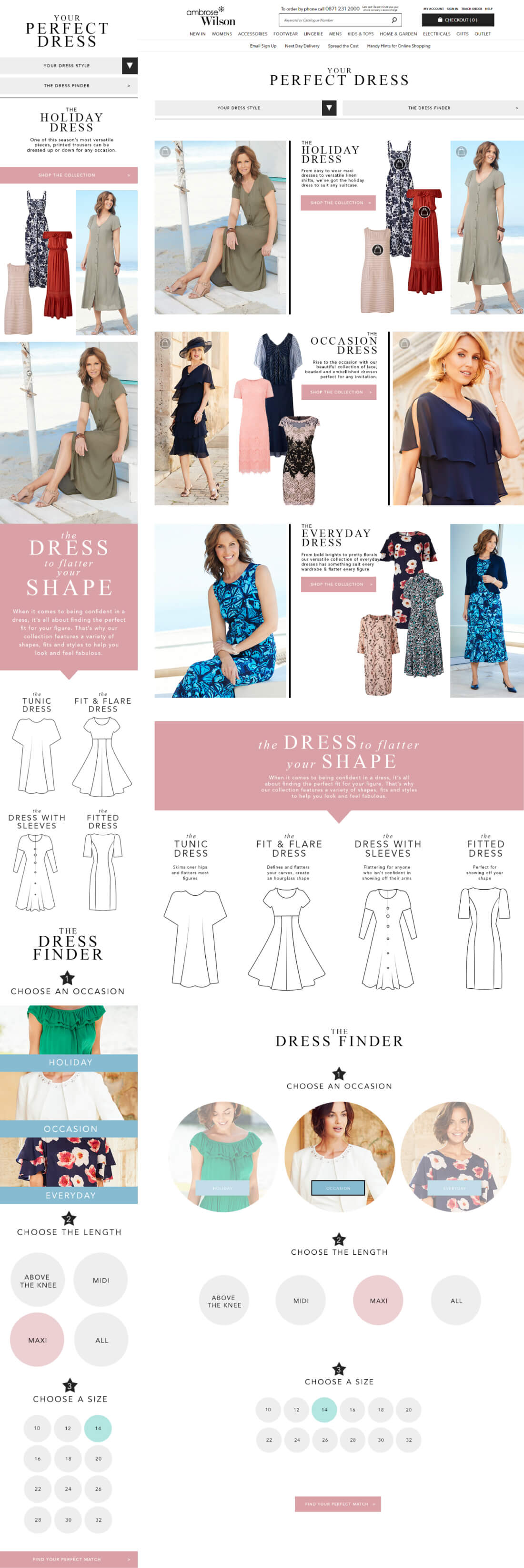The Solution I designed a step-by-step selection tool that asks the user simple questions about what figure shape, occasion, style and size they are searching for.